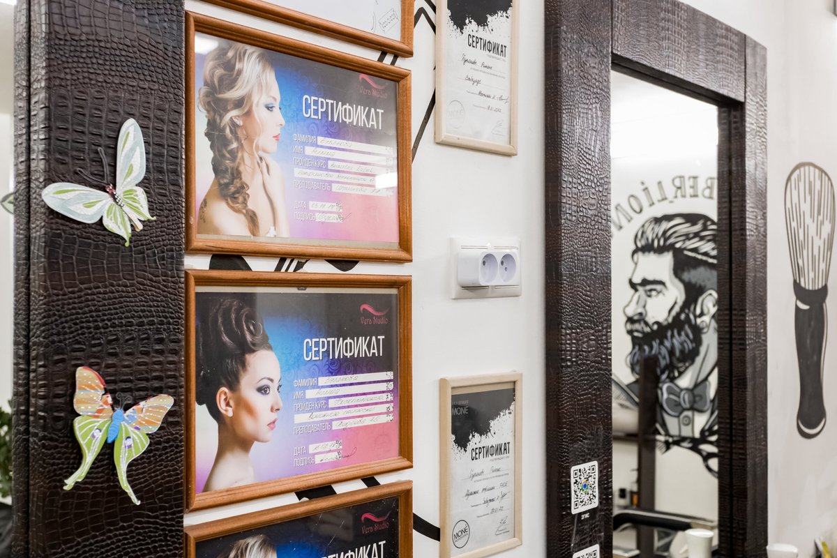 Также к услугам наших посетителей эпиляция, шугаринг, коррекция формы бровей, перманентный макияж, тату, мелирование, тонирование, выпрямление, укладка, химическая завивка и биозавивка волос, свадебные прически, мужские стрижки, стрижка бороды и усов, аппаратный и традиционный педикюр, спа-уход для ногтей.